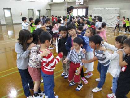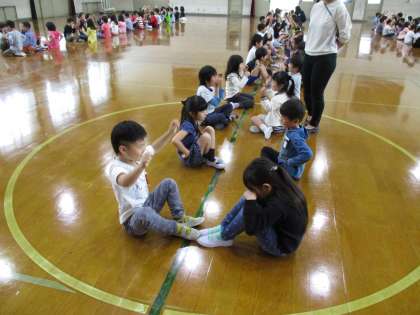 なかよしかいでは,「おちゃらかほい」「なべなべそこぬけ」「かもつれっしゃ」をして楽しみました。