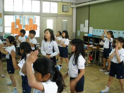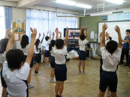 4年生は団体演技をします。