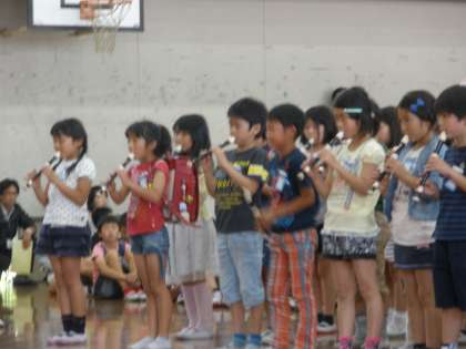 まず,リコーダーで演奏しながら入場し,