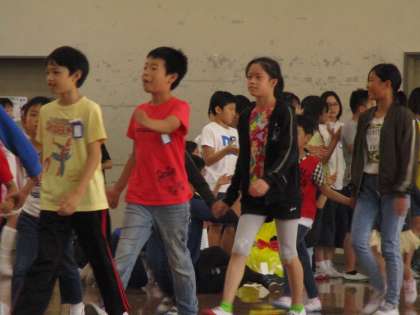 たてわりグループの1年生の手を繋いで入場しました。