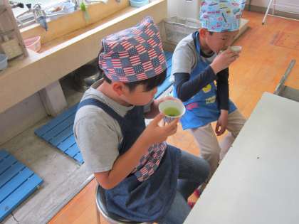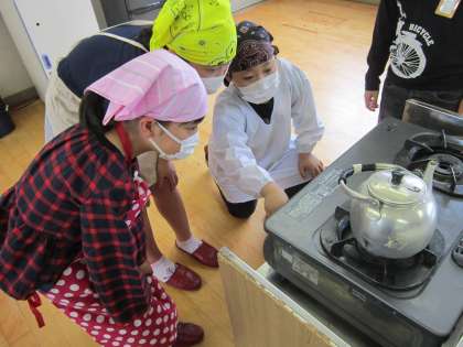 先週の家庭科の時間にお茶をいれるという調理実習を行いました。ガスコンロの使い方や,茶葉からお茶を煮出すということを確認しながら行いました。少し苦みもありましたが,子どもたちはとても楽しそうでした。