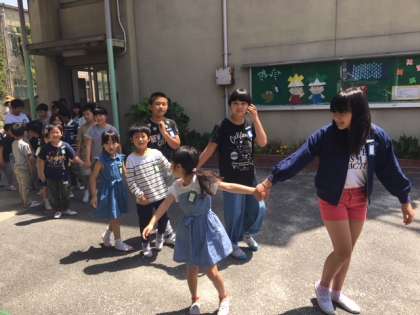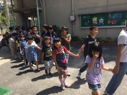 1年生を迎える会が行われる体育館に向かう子どもたちの様子です。しっかりと6年生のお兄さんお姉さんに手をつないでもらって歩いています。これから本番、どきどきです。どんな出し物があるのでしょうか。自分たちの発表はうまくいくでしょうか。みなさん、頑張りましょう。