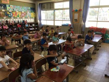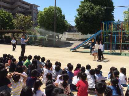 今日は火災が起きたことを想定して避難訓練をしました。子どもたちはみんなとても真剣に訓練に取り組むことができました。避難するときは「お・は・し・も・て」を守ることを再確認しました。