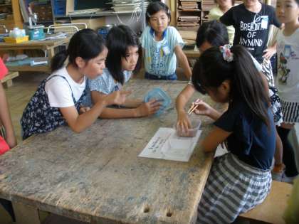 各学級で選ばれた代表者5名が,お箸を使って