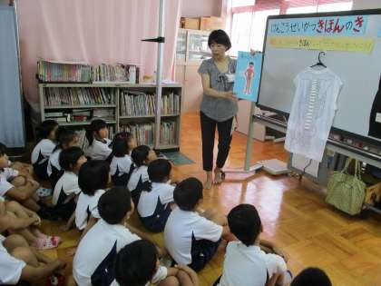 人間の背骨はたくさんの小さな骨でできていること,姿勢をよくするためには筋肉を鍛えることが大切だということについてわかりやすく教えてもらいました。