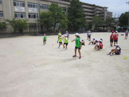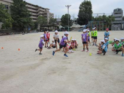 6チームに分かれてリレーを行いました。今回は走順を変えてみてタイムの変化を確認しました。相手チームと走るので勝敗にもこだわりながらみんな走り切ることができました。次回からは,バトンパスの練習にも取り組んでいきたいと思います。