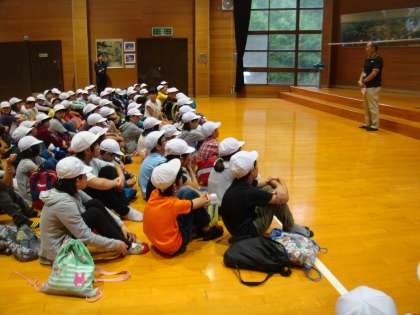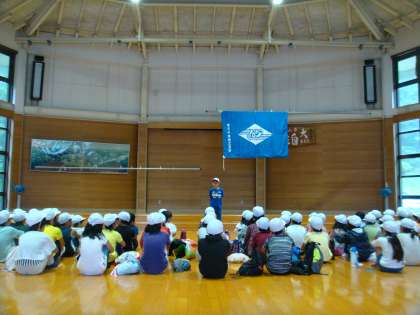 無事に,『みさきの家』に到着しました。雨が降っていますが,涼しくてとても過ごしやすいです。荷物を置いた後,入所式を行いました。子どもたちは,所員さんの話をしっかりと聞いて,これからの3日間の過ごし方をイメージしていました。