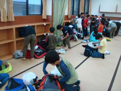 お風呂に入る準備を終えたら,友達と一緒にゆっくりとおふろに入り,疲れをとることができました。