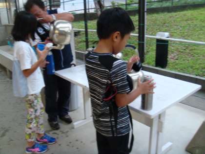 待っている時間を利用して,新しいお茶を入れてもらっています。