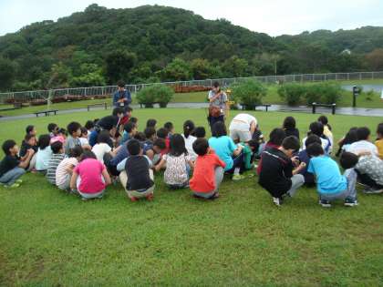 木々や芝生の緑があざやかになっています。合間をぬって広場で集合写真を撮りました。