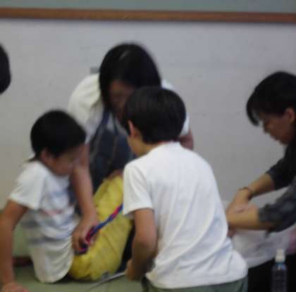 次にお産劇と生まれる体験をしました。生まれてくるときは,お母さんも赤ちゃんも一生懸命がんばらないといけないこと。周りの人応援も,二人のがんばりを助けていることが分かりました。