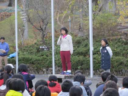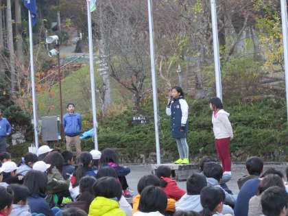 四校合同朝の集いの様子です。砂川を代表して2名が学校紹介をしてくれました。緊張していたと思いますが、トップバッターまでつとめてくれました。