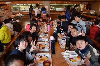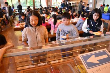 朝食の様子です。今日の朝ごはんははじめての食堂を使いました。バイキング形式に子どもたちは大喜びでした。たくさん食べたので、これからの活動も元気に頑張れそうです。
