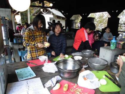 ネイチャービンゴも無事全班ゴールしました。今から2回目の野外炊事に取り掛かります。昨日とは違い、すべて自分たちの力で作るということをめあてに頑張っています。