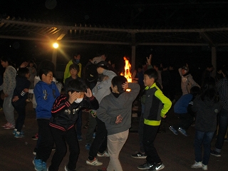 火の神から授かった火を囲んで,全員で「燃えろよ 燃えろ」を歌いました。そして,レクレーション係がリーダーとなり,ゲームを楽しみました。