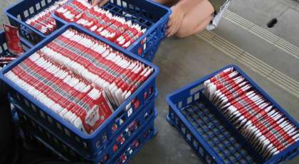 給食時間の終わりには,なるべく欠かさずに牛乳搾りをしています。