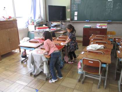 5月8日,いつも一緒にお手伝いしてくれている6年生が修学旅行中なので,1年生は初めて自分たちだけで掃除をしました。6年生に教えてもらったことを思い出しながら,みんなで力を合わせて頑張りました。