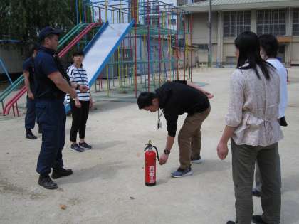 火災報知器の非常ベルが鳴ると,消防署へ連絡,出火場所の確認,初期消火,子どもの安全確認,避難経路の確保,警備会社への連絡,校内放送,などなど,本当に短時間でこれだけのことをしなければなりません。