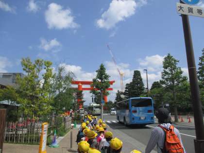 5月17日,1年生は動物園に遠足に行ってきました。動物園までの途中の道では,平安神宮の大きな鳥居が見えて,「めっちゃ大きい!」と興奮していました。