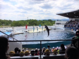 イルカショーでは,イルカの大ジャンプも見ることができ,子どもたちは大はしゃぎでした。