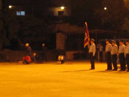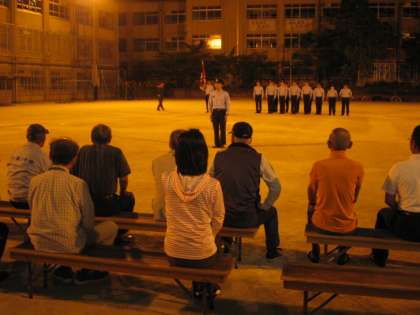 地域の消防団の方たちによる,日ごろの訓練の成果を小学校のグラウンドで披露してくださる機会が18日の夜にありました。