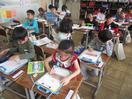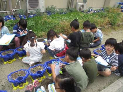 「先生!芽が出てる!」と,朝から興奮気味の子どもたちでした。観察カードもしっかり書きました。
