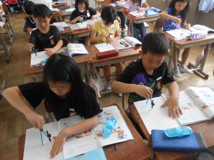 休み時間にもコンパスの練習をする子がたくさんいて,みんながんばっていました。