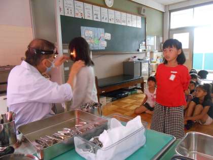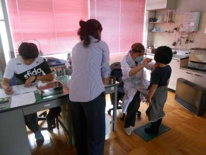 のど,はな,耳の順番で学校医の先生にみていただきました。