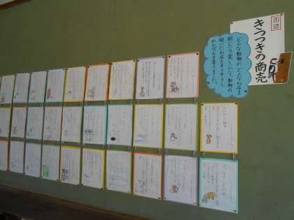 そして,「きつつきの商売」の学習で書いたカードを掲示しました。