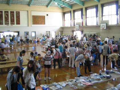 今日は地域女性会の方々主催でバザーが行われています。体育館いっぱいに掘り出し物の数々!見ているだけでも楽しいです。