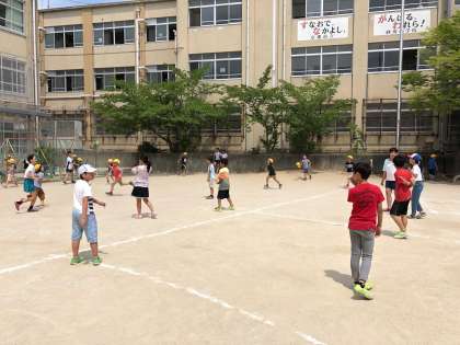 休み時間は,ドッジボールを楽しんでいる5年生ですが,最近は,1,2,3組全てのクラスが一緒に遊んでいるだけでなく,男女も仲良く遊んでいます。学年全体でなかよくできることはとても素敵です。