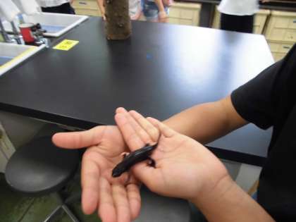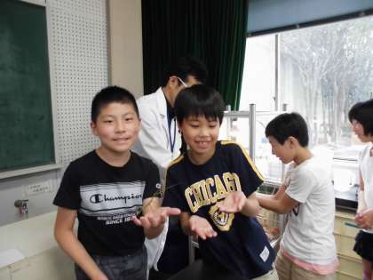 休憩時間にも,生き物と触れ合うことができました。また、木材を使った楽しい実験もできました。みんな興味津々。大喜びです。