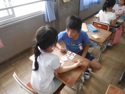 カードを使って友達ともゲームを通して交流しています。