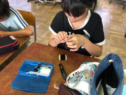 家庭科の授業で,裁縫セットを使いました。一通り道具の確認をしてから,針に糸を通す練習をしました。苦戦するかと思いきや,楽しそうに糸を通せていました。休日参観では,実際に布を縫う練習をします。子どもたちの頑張る姿をご覧ください。