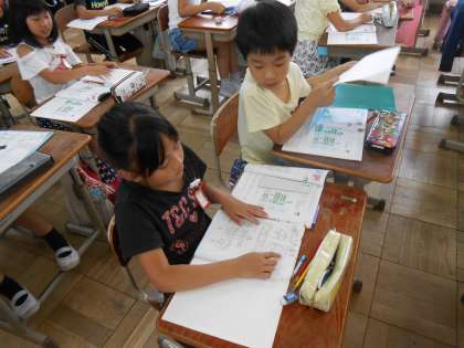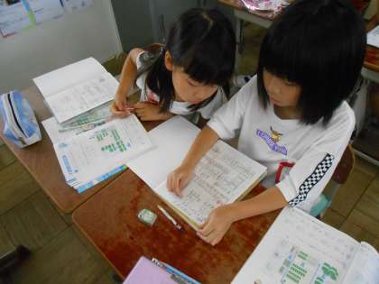 ペアの友達とも筆算の手順をしっかりと確かめました。