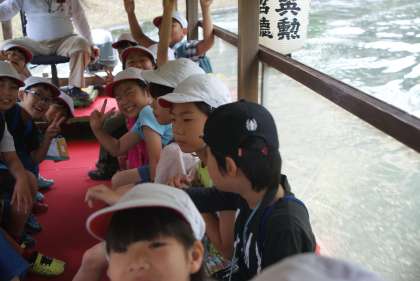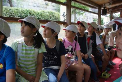 まずは十石船に乗りました。船頭さんの説明も聞き,歴史についても学べました。寺田屋の横を通ったり,月桂冠の酒造の横を通ったりと歴史的な建物も見ることができました。
