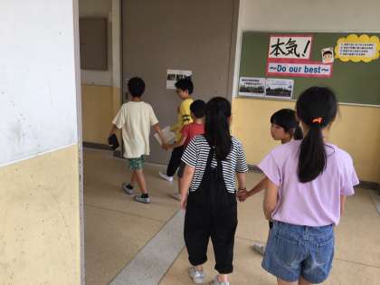 3時間目にスマイル集会がありました。スマイル班で2回目の活動でした。グループで協力してミッションをクリアしていきます。 黄色い食べ物と言えば? 赤い色の食べ物と言えば? フラフープをみんなで何秒でくぐれるか。 など「心を一つに」することがテーマになっていました。子どもたちは、ミッションをクリアすると大喜びしていました。スマイル班の絆が少し深まったのではないかなと思いました。次回はスマイル遠足です。楽しみですね。
