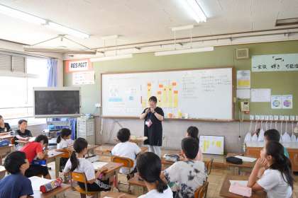 今回の食の指導では,体にとってよい水分のとり方を考えました。ふだん飲んでいる飲み物に含まれている砂糖の量を予想したり,砂糖をとりすぎたらどうなるかを考えたりしました。これからの季節,水分のとり方には気をつけてほしいと思います。