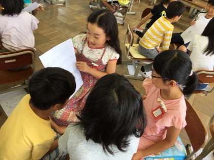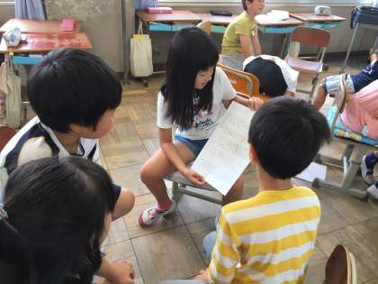 今日は、自分が書いたほうこく文をグループで発表しました。相手に伝わるように、図を指しながら丁寧に話すことを目標としました。聞き手も、しっかり話し手の方を向いて質問や感想が言えるように真剣に聞いていました。