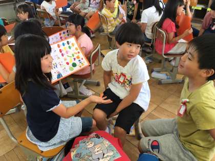 授業は違いますが、子どもたちはいろいろな場面でコミュニケーションしています。それが国語であっても英語であっても大事なことは「相手意識」があるかどうかです。これからもどんどん経験を積み重ねていきたいですね。