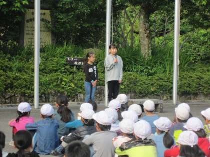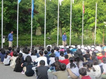 山の家の先生からここで見られる鳥や動物の話を聞いた後