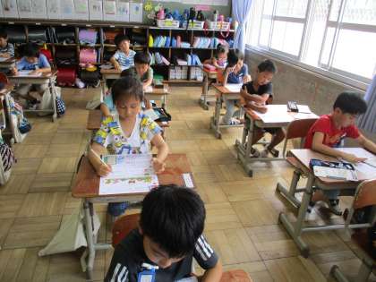初めてのテストを行いました。テスト前にテストのルールを聞き,真剣に取り組みました。解くだけではなく,しっかり見直しをする習慣がつくように,声かけを続けていきたいと思います。