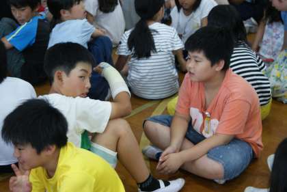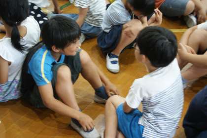 地球温暖化を防ぐためにどうすればよいのかや,初めてわかったことなどを二人組で話し合いました。積極的に話合いをする様子を見て,気候ネットワークの方たちも褒めてくださいました。