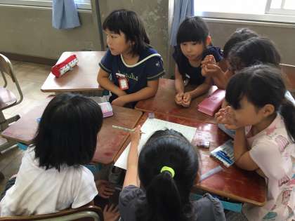 遊び・生き物・読み聞かせ・クイズマジック・生き物・お笑い・掲示・誕生日係に分かれて活動しています。どの係も、自分たちで活動内容を考えて取り組んでいます。