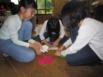 紙飛行機飛ばして,輪に何回で入れられるかを競います。