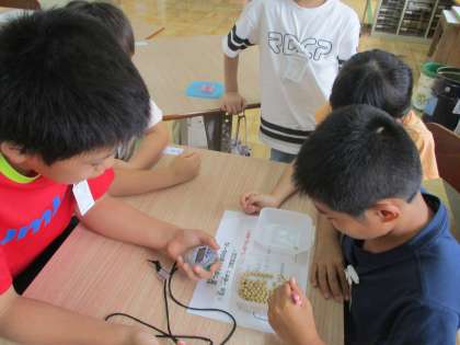 30秒の時間集中して豆をつまんで運びます。