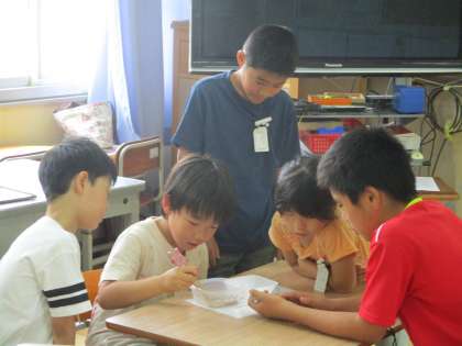 中間休みに低学年&わかばの豆つまみ大会がありました。