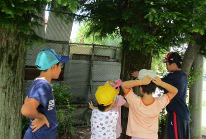 聞こえてきました。中間休みにせみを探しに行った子どもたち…