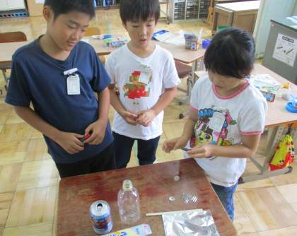予想してから実験しました。わりばしやペットボトルなどは