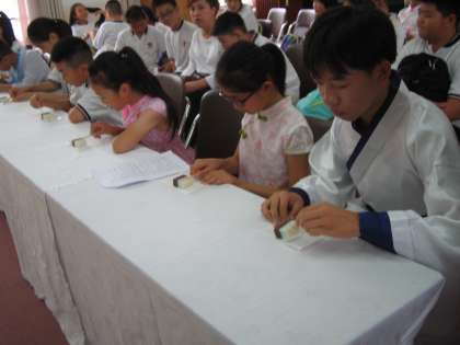 中国の子どもたちは,日本の茶道に初めて触れるわけです。日本語もわからなければ,お茶の作法も何もわかりません。でも,興味をもって,自ら進んで,臆することなく体験をしていました。